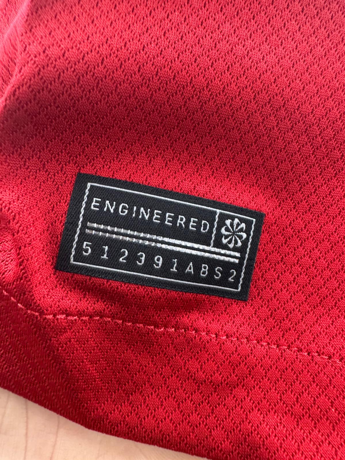 Description - A class kit made by Nike. The shirt has a classic design with red base and white detailing on the sleeves and collar. The shirt is going to be worn during the current 2023-24 season were Liverpool will compete in the Premier League and Europa League. Worn by the likes of Van Dijk, Darwin Nunez and Salah.