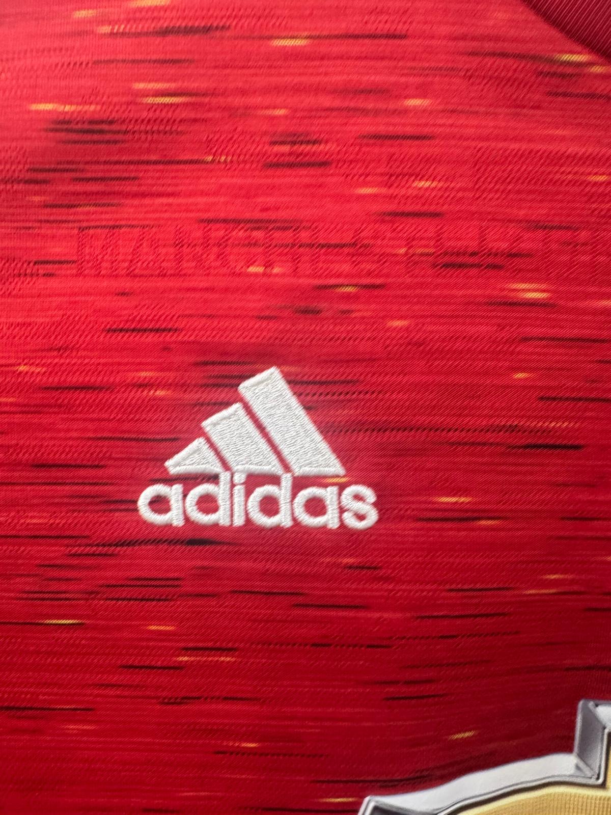 Description - A unique and modern red shirt from adidas, this jersey is a symbol of a season of growth and progress at Old Trafford. It was worn by the likes of Bruno Fernandes and Marcus Rashford as the team secured a second-place finish in the Premier League. United equalled the biggest win in Premier League history this term with an emphatic 9-0 win over Southampton. The team also battled their way to the UEFA Europa League Final, showing their determination and ambition to win silverware. This jersey represents a team that was constantly improving and getting closer to their goals.